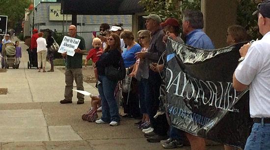 Kathy noted that there were many children on the sidewalk. “One family brought four and one mom brought two little girls,” she said. “Another prayer supporter brought balloons which bounced back and forth in the strong wind all morning.”